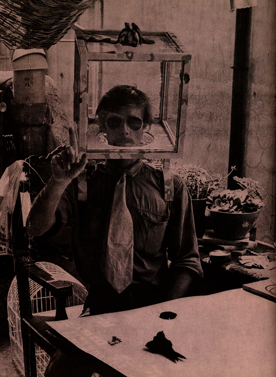 This is the moment when Thek’s work becomes increasingly transformed; the moment contemporary art history begins to lose the ability to parse and understand the work more generally; and the moment in which Thek’s engagement with popular Italian culture explodes. From Rome, in 1968, Thek prepared an exhibition entitled A Procession in Honor of Aesthetic Progress: Objects to Theoretically Wear, Carry, Pull or Wave. Moving from “pop” art to the popular, from minimalist “process” art to the trappings of a cultural procession, Thek’s “sculptures” were all deeply related to the kinds of props and religious costumes worn or carried in patron saint festivals. My research has traced the religious festivals we know Thek experienced in the Italian South—an Easter trip to Stromboli in 1963; a key summer festival for Saint Joseph in the village of Casteldaccia, near Palermo, where Thek lived; and later processions central to Ponza. After 1968 Thek focused on large-scale installations almost always called processions, made collectively with a team of collaborators (The Artist’s Co-op). Individual sculptural elements involved body casts covered in rubber fish (Fishman), or decorative dwarfs and kitsch animals made for Thek by an Italian craftsman named “Contrucci.” Myths or folktales eventually erupt everywhere in the work, from Italy and beyond—the Pied Piper, Tower of Babel, Uncle Tom’s Cabin, Mr. Bojangles.