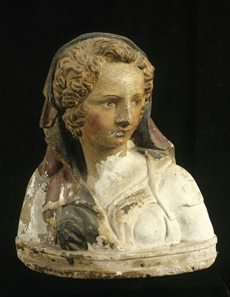After Jacopo della Quercia, Bust of a Woman, 15th century, polychromed stucco, 44.4 × 40.6 × 15.2 cm (17 1/2 × 16 × 6 in.), Howard University Gallery of Art, Samuel H. Kress Collection