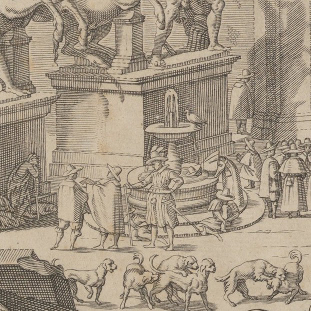 Francesco Villamena, Portrait of Ioannes Altus (Johann Alten), of the Swiss Guard, standing by the Quirinal and pointing out the antiquities of Rome (detail), 1623, etching; first state of two, The Metropolitan Museum of Art, Bequest of Phyllis Massar, 2011, 2012.136.919