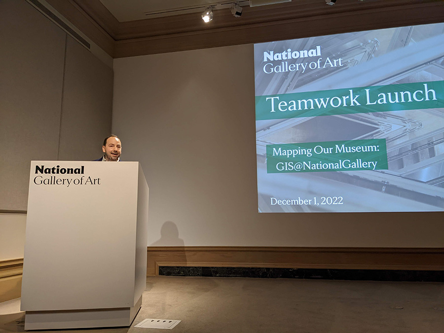 Matthew J. Westerby introduces the teamwork launch for Mapping Our Museum: GIS@NationalGallery, December 2022