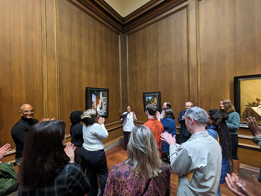 Our 2022–2024 Howard University undergraduate interns (Keauna Brantley, Amaya Charley, Dana Goodridge, Kennedy Martin, Sacha Reid, and Munyang Tengen) finished their second year of the program, joining several National Gallery departments to support projects that advance institutional goals while building the interns’ professional skills. In addition, the cohort continued to come together for community events, such as lunches with other interns at the National Gallery, professional development seminars, and museum visits. One memorable event was a visit to the Baltimore Museum of Art for a tour of The Culture: Hip Hop and Contemporary Art in the 21st Century with one of the exhibition designers, Julian Arrington. As I write these reflections, the group is attending the 2024 Association of African American Museums annual conference in Baltimore. Our 2023–2025 interns (Jada Brooks, Clay Cauley, Aletheia Couts, Miles Kenyan Stewart, Elroi Yonatan, and Aneesah Lawrence) participated in weekly seminars that introduced topics in art history, museum studies, and related fields along with a focus on professional exploration and skills-building. They interacted with colleagues from the National Gallery and other institutions through exhibition tours, department and institutional visits, research-in-progress and career spotlights, and hands-on activities. In January, the cohort visited New York City, meeting with staff from the Metropolitan Museum of Art and Stavros Niarchos Foundation Library and engaging with collections at the Morgan Library & Museum and El Museo del Barrio.