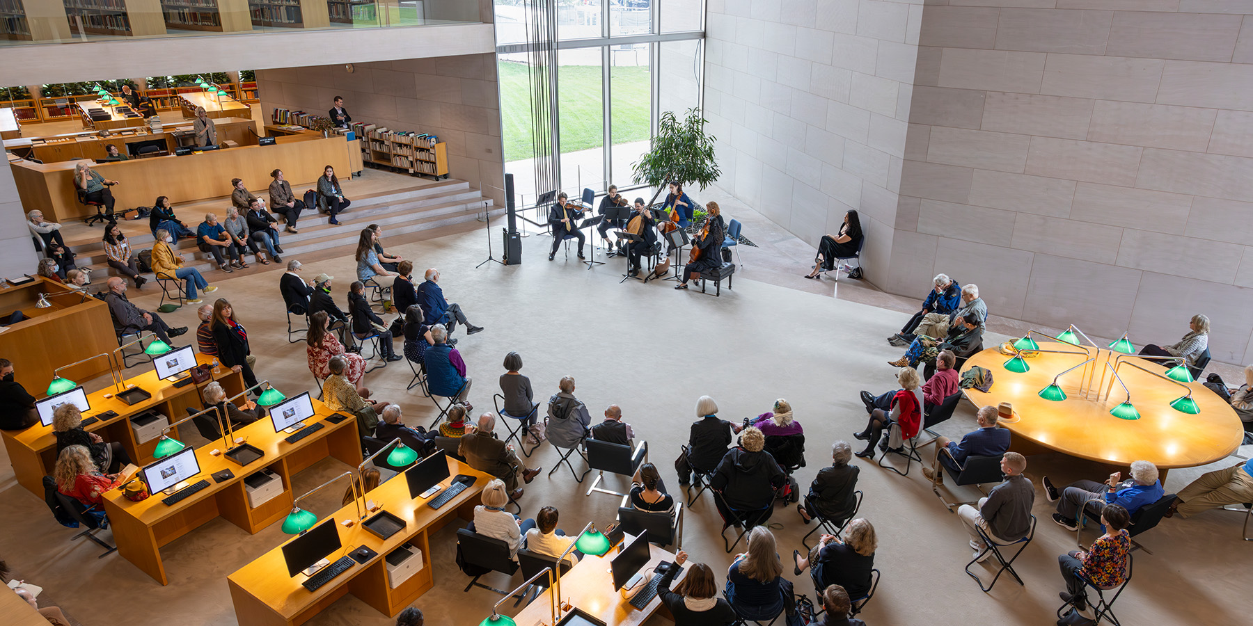 This year’s academic programs began with music and ended with theater. In October, the Center cohosted a multiday, two-location conference with the Juilliard School. Organized with Eve Straussman-Pflanzer, curator and head of the department of Italian and Spanish paintings at the National Gallery, and Elizabeth Weinfield, musicologist and faculty member at Juilliard, Women in Art and Music: An Early Modern Global Conference featured scholarly presentations and musical performances focused on women in a myriad of roles in the early modern period. The conference celebrated the National Gallery’s acquisition of a painting by Italian artist Lavinia Fontana, which depicts the 16th-century musician Lucia Bonasoni Garzoni. The program activated spaces across the National Gallery with performances from students of Juilliard’s Historical Performance program and the ensemble Sonnambula. Displaying Fontana’s portrait outside of the National Gallery’s East Building Auditorium further added to the multidisciplinary, multi-sensorial nature of this conference.