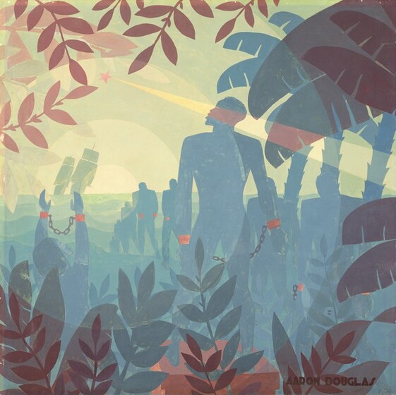 Aaron Douglas, Into Bondage, 1936, oil on canvas, Corcoran Collection (Museum Purchase and partial gift from Thurlow Evans Tibbs, Jr., The Evans-Tibbs Collection), 2014.79.17