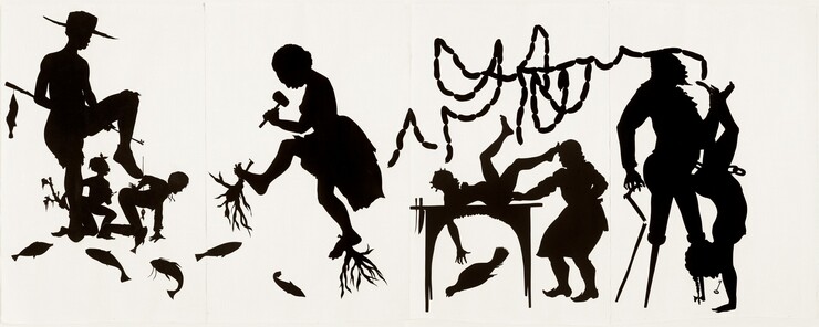 In Walker's cut-paper silhouettes, troubling narratives of violence, lust, and exoticism play out. Her work draws upon imagery common in the antebellum South and is controversial for its use of racial stereotypes of both blacks and whites. Walker focuses on the role of stereotypes in shaping history and their complex function in American race relations today. The abbreviation "Inc." in the work's title alludes to the institutionalization of racism and the implicit cultural approval of such degrading images. By suggesting narratives that complicate distinctions between fact and fantasy, victim and predator, black and white, Walker's work confronts the viewer with the uncomfortable challenge of self-reflection.