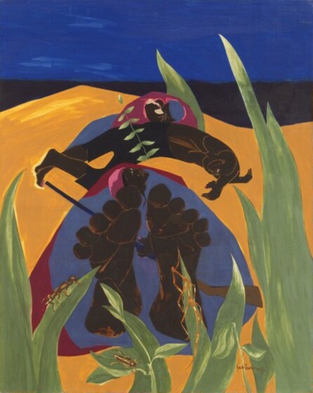Jacob Lawrence, Daybreak - A Time to Rest, 1967, tempera on hardboard, Anonymous Gift, 1973.8.1