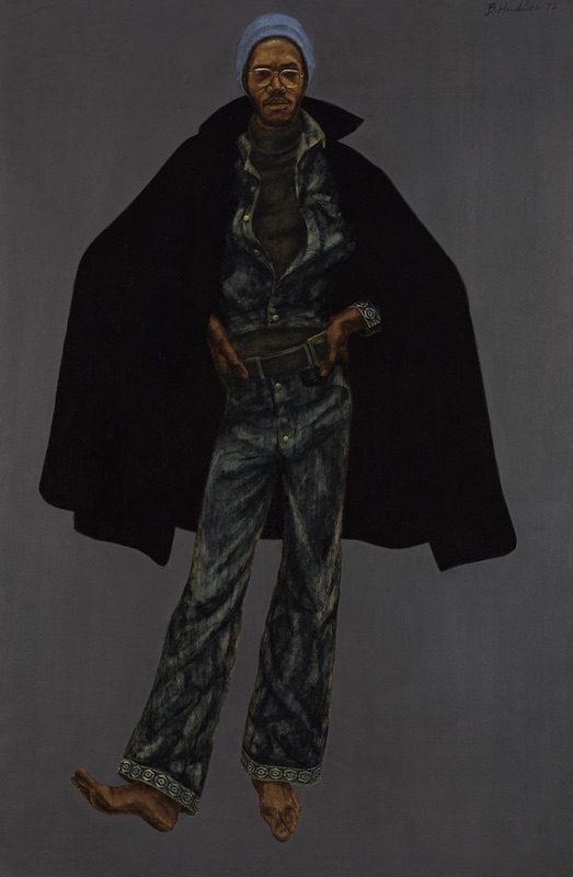 This life-size portrait depicts a young, gay Black man with a sense of confidence and style. As an artist and educator, Hendricks was keenly aware that the history of European and North American art largely omitted Black and brown subjects—a gap the artist addressed by making various members of his community the focus of his paintings. Hendricks depicts Taylor, a fellow student at Yale University, in a contrapposto stance, hands on his hips and weight resting on one leg, reclaiming a posture commonly associated with individuals in positions of power, such as gods or members of the aristocracy, in the classical tradition of portraiture.