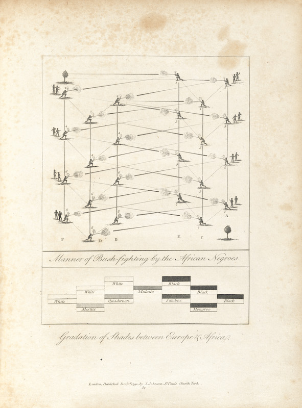 Several artists, including William Blake, created engravings for the publication based on Stedman’s drawings that depict the flora and fauna in Surinam, as well as more gruesome and violent scenes. The illustrations contrast the natural beauty of the landscape of Surinam with the cruelty experienced by Indigenous and enslaved individuals. Engravings like these laid the groundwork for later exploitative images created in the name of anthropology of ethnography.