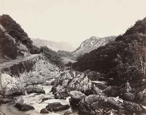 In 1857, Fenton traveled to the heart of Wales—the valleys of the Conway, Lledr, and Llugwy. This area had been sparsely populated and little visited by English travelers until the late eighteenth century. Aided by new roads and attracted by rapturous descriptions in guidebooks, many artists visited the region in the 1840s and 1850s. Its rocky streams, wooded hollows, and mountainous expanses were considered both "sublime and beautiful" and inspired some of Fenton's finest landscape photographs.