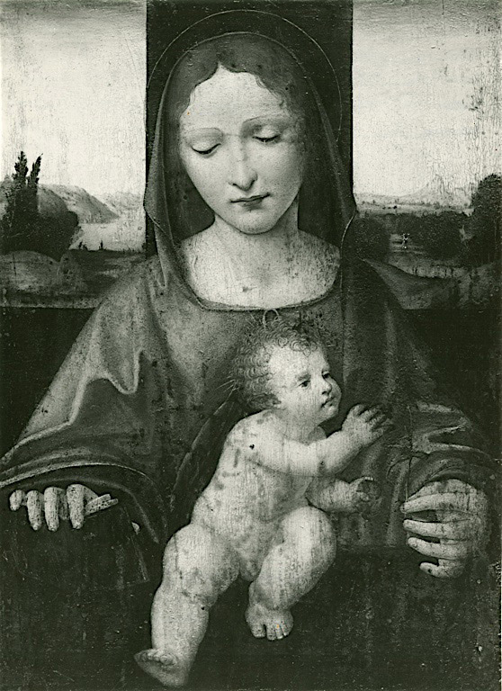 Lombard 16th Century, Madonna and Child, n.d., oil on poplar panel. In 2012, this painting was returned to the Gemäldegalerie in Berlin by the son of the US officer who had purchased it in 1946. It is the only painting known to have been stored at Flakturm Friedrichshain that has reemerged since the fire.