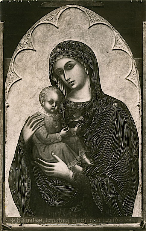 Barnaba da Modena (active 1361–1383), Madonna and Child Feeding Goldfinch, 1369, oil on canvas over poplar panel. Goldfinches have a complex symbolism that has been associated with the human spirit, fertility, and the Passion of Christ. They frequently appeared in Italian Gothic and Renaissance devotional images. This work, one of the earliest depictions of this symbol in Italian painting, was the only known painting by Barnaba to have featured a goldfinch.