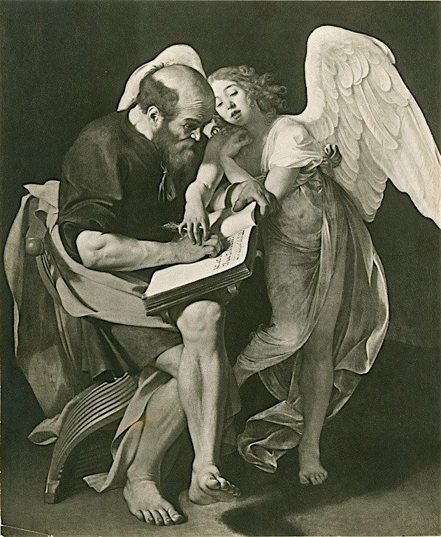 Michelangelo Merisi da Caravaggio (1571–1610), Saint Matthew and the Angel, c. 1602, oil on canvas. Perhaps the most famous of the destroyed works, this masterpiece was incendiary for its time and a prized possession of the museum. Commissioned for the Church of San Luigi dei Francesi in Rome, it was rejected due to its representation of Saint Matthew as an ordinary and possibly even uneducated man, as the angel appeared to move his quill for him.