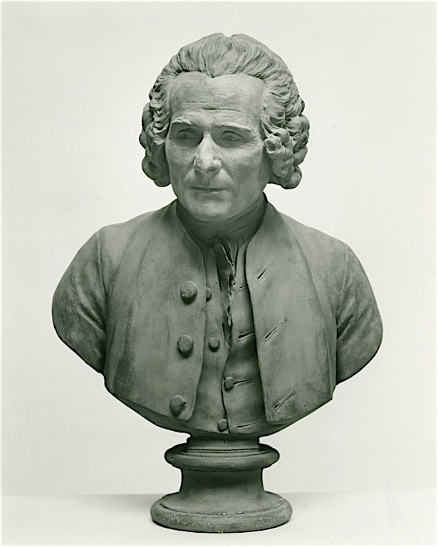 Jean-Antoine Houdon (1741–1828), Jean-Jacques Rousseau, 1778, plaster. This bust is a cast from of one of three models created by Houdon of Rousseau. Houdon based the face on the death mask that he molded less than a day after the philosopher had passed away.