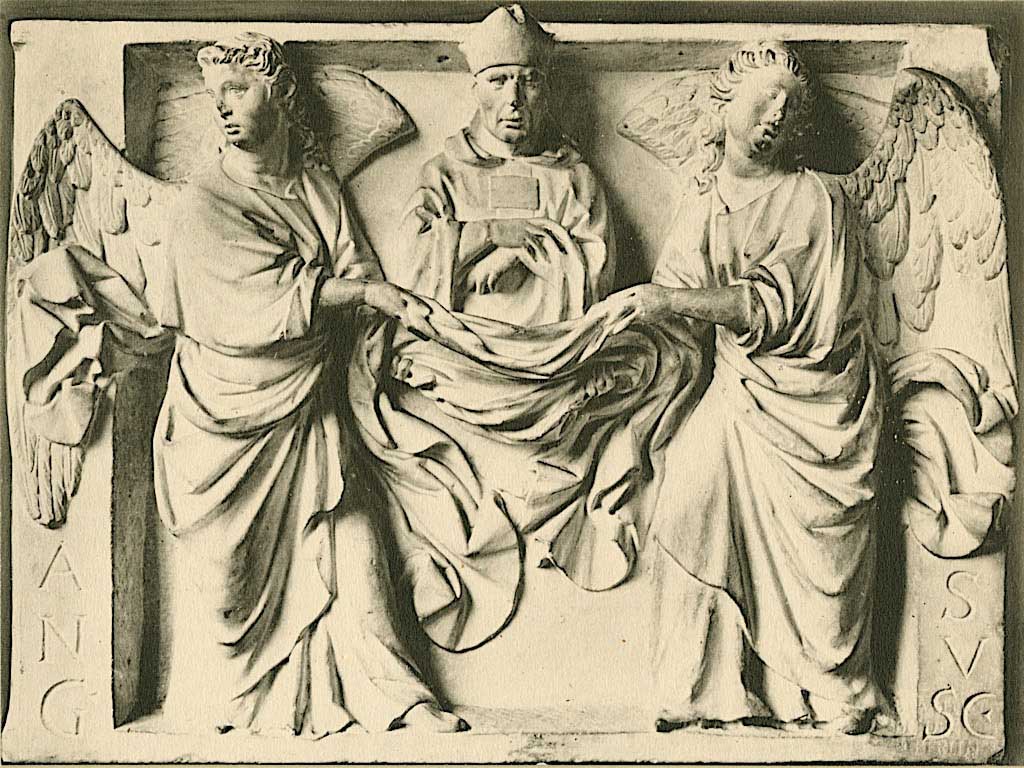 Nicola Pisano (c. 1220–1278/1284), The Elevation of the Soul of Saint Martin, c. 1280, marble. This relief was once part of the tomb of Martino Ammannati from the church of San Francesco in Pistoia. Wilhelm von Bode, one of the first directors of the Kaiser-Friedrich-Museum and eponym of its successor, the Bode Museum, acquired perhaps the most complete collection of Italian Gothic sculpture of the early 20th century, much of which was damaged, looted, or destroyed in the fire.