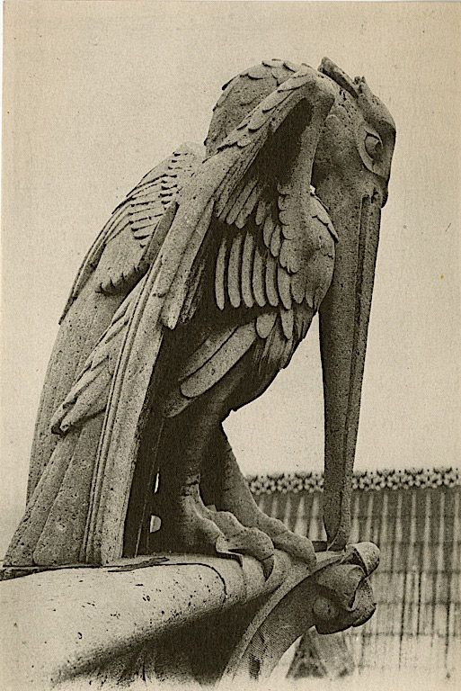 Pelican gargoyle. Photo by N. D. (Neurdein Frères).