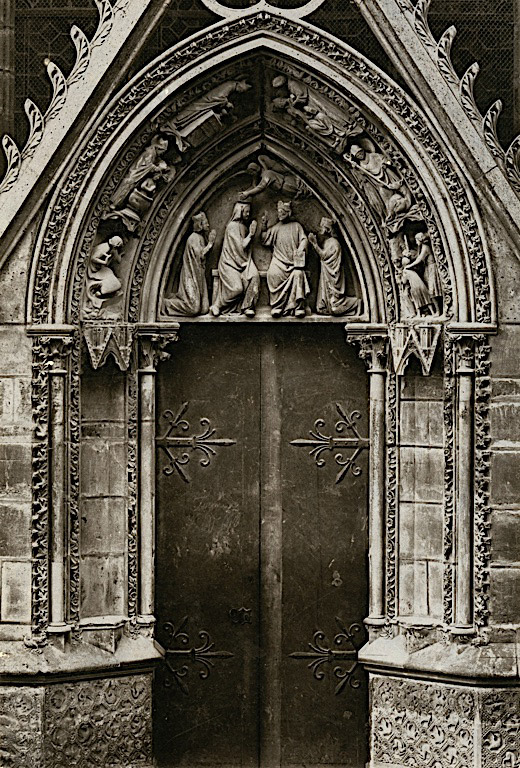 The Red Door, or Porte Rouge, was built by architect Pierre de Montreuil in the second half of the 13th century. It connected the cloister, where the canons lived, and the choir of the cathedral to facilitate their access.
