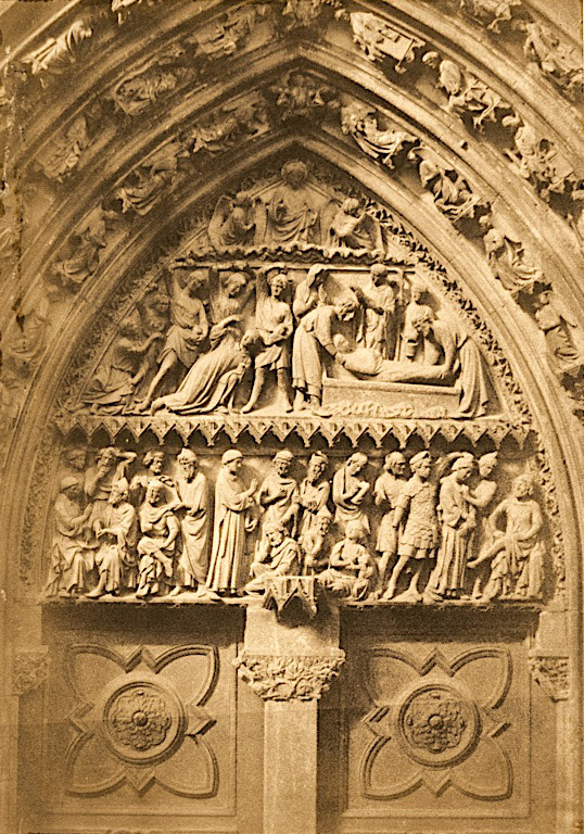 This portal, known as Saint Stephen’s Portal, is dated 1257 in an inscription that also identifies the master-mason as Jean de Chelles. The sculpture program depicts the life and martyrdom of Saint Stephen.