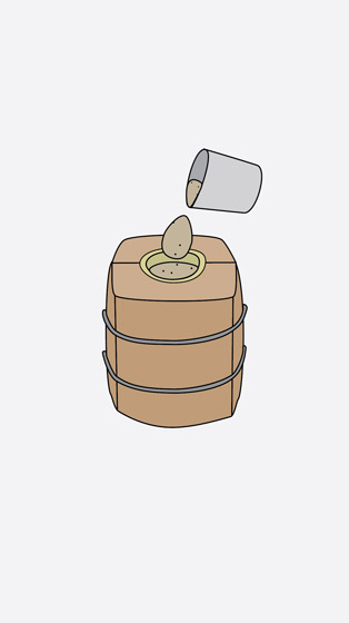 5c. A new mold for casting was formed by encasing the wax replica in a clay mixture similar to that of the core.