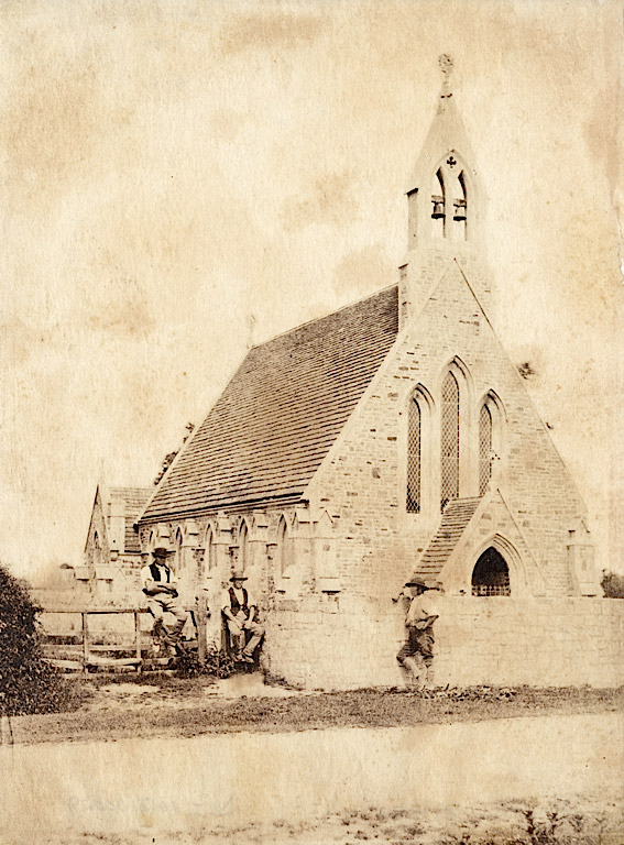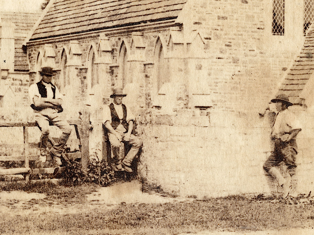 As with Winterbourne (previous photo), the church at Pilning is one of a group of four churches photographed in April and May of 1859. The Pilning church was a new construction completed in 1855. Perhaps these workers were part of the building crew.