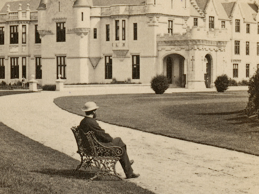 When construction began on the new castle at Balmoral in 1854, Prince Albert chose Scottish photographer George Washington Wilson to document the work. Wilson subsequently became portrait photographer to the royal family, and in 1873 he was officially appointed “Photographer Royal” to Her Majesty Queen Victoria. The castle gardens were private until well into the 20th century, making the view in this carte de visite of great interest to tourists and armchair travelers alike.