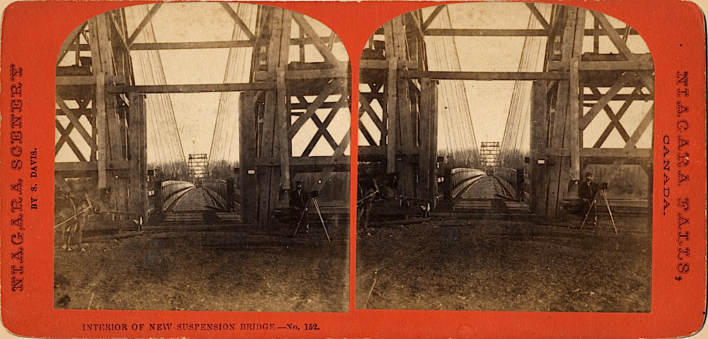 Saul Davis (act. 1860s–1870s), New Suspension Bridge, Niagara Falls, Canada, c. 1869, albumen print stereograph