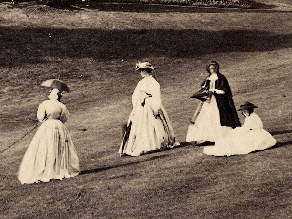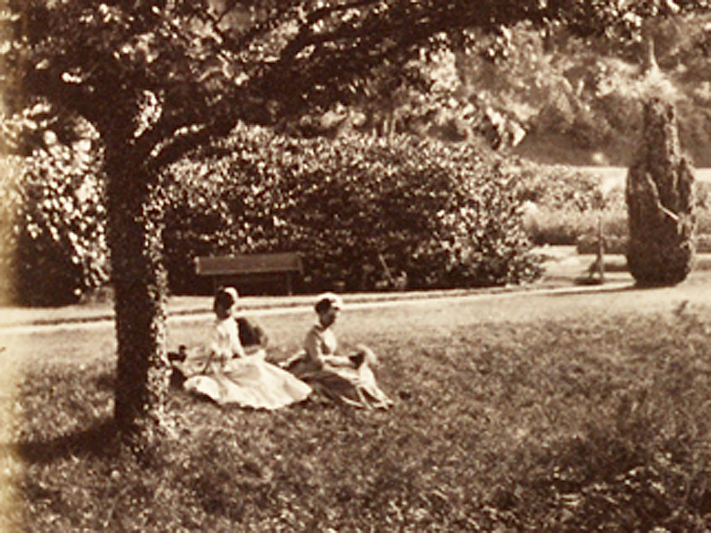 Photography was often used by those who could afford it to document their homes and pastimes. Here we see an outing at Arbury Park, with ladies in summer attire.