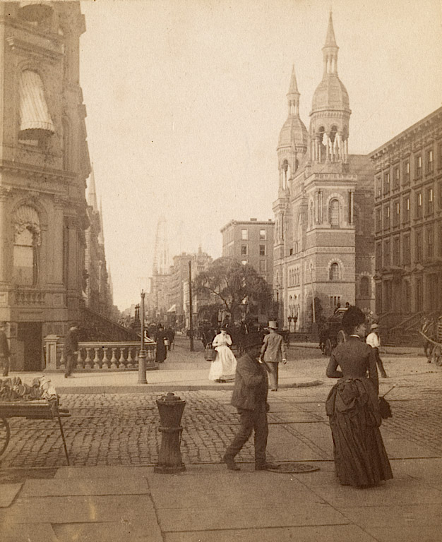 Robert L. Bracklow (1849–1919), from his Glimpses through the Camera series, Fifth Avenue at 42nd Street, New York, USA, September 1, 1888, albumen print cabinet card