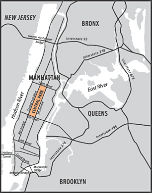 Christo and Jeanne-Claude, The Gates, Project for Central Park, New York City, collage 1996, enamel paint, wax crayon, graphite, photograph by Wolfgang Volz, printed map, and tape, on paperboard, 35.6 x 27.9 (14 x 11). National Gallery of Art, Washington, The Dorothy and Herbert Vogel Collection, Gift of Dorothy and Herbert Vogel, Trustees 2001.9.1 © Christo 1996