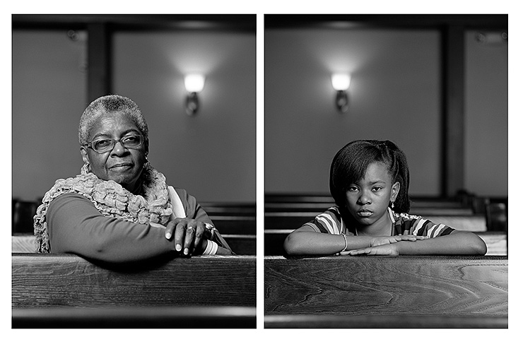 On September 15, 1963, four Klansmen bombed the 16th Street Baptist Church in Birmingham, Alabama; four young girls were killed and two teenage boys were murdered in racially motivated violence following the incident. In 2005 American photographer Dawoud Bey (b. 1953) visited Birmingham to explore the possibility of making artwork to commemorate the event. He created a series, The Birmingham Project, composed of diptychs—works of art on two combined panels. Each diptych pairs a portrait of a young person the same age as one of the victims with a second portrait of an adult 50 years older—the child’s age had she or he survived.