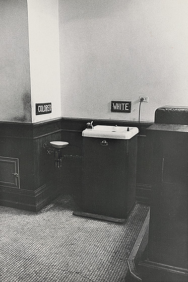 The photograph seen here is of two water fountains: one marked “white” and one marked “colored.” Water fountains became symbols of the segregation that permeated all parts of life in the South. This image did not show direct physical violence; instead it demonstrated how Jim Crow laws, which were made at a state and local level in order to enforce segregation, influenced everyday activities such as the simple act of taking a drink of water.