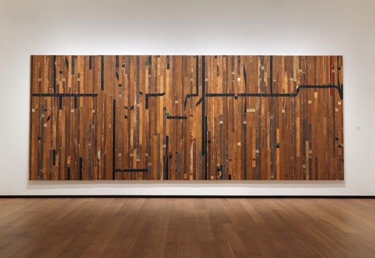 Theaster Gates, American, born 1973, Ground Rules (black line), 2015, wood flooring, Gift of the Collectors Committee 2018.11.1