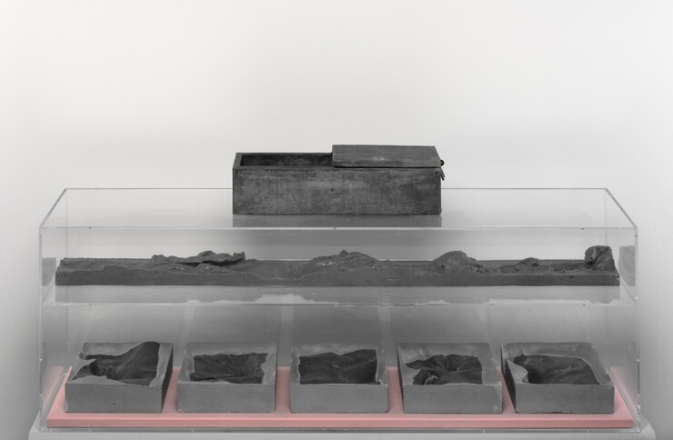 Robert Morris, American, born 1931, Hook, 1963, lead box, mirrors, steel hook, plaster casts, and acrylic vitrine, Gift of the Collectors Committee 2005.49.1