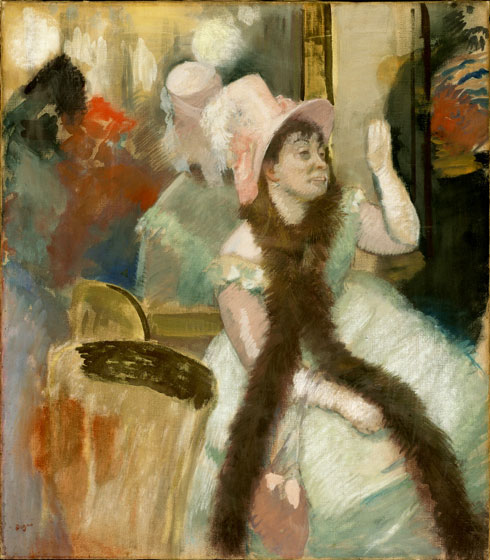 Edgar Degas, Portrait after a Costume Ball (Portrait of Mme Dietz-Monnin), 1879, distemper with metallic paint and pastel on canvas, The Art Institute of Chicago, Joseph Winterbotham Collection. Photography © The Art Institute of Chicago