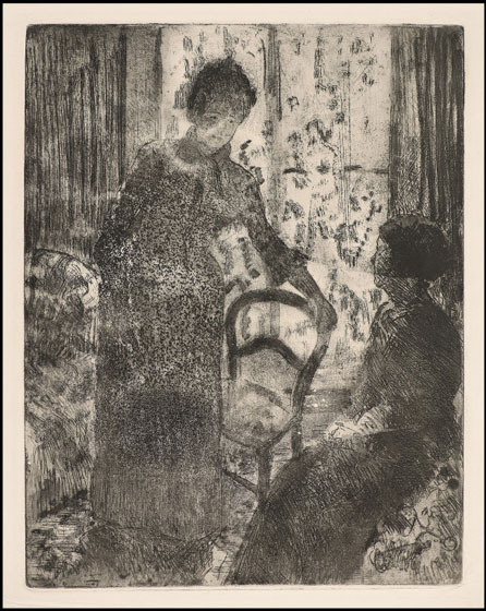 Mary Cassatt, The Visitor, c. 1881, softground etching, drypoint, aquatint, etching, and fabric texture, Sterling and Francine Clark Art Institute, Williamstown, Massachusetts. Image © Sterling and Francine Clark Art Institute, Williamstown, Massachusetts, USA. Photographer Michael Agee
