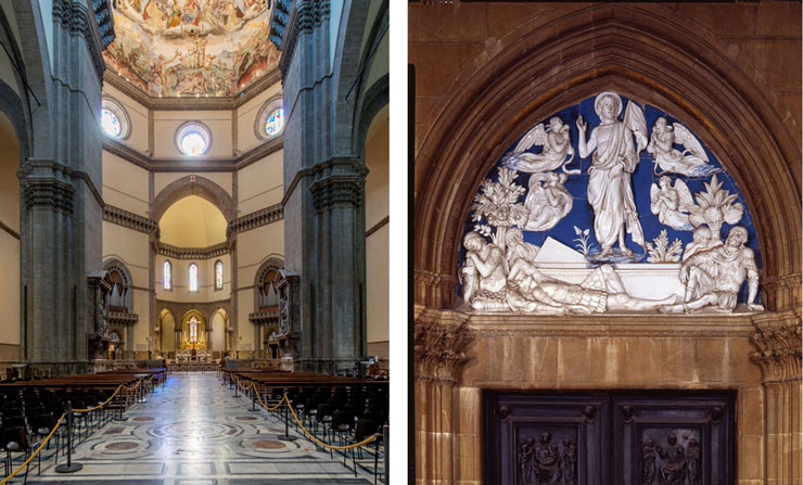 (Right) Luca della Robbia, Ascension, 1446–1451, Santa Maria del Fiore, Florence. Photograph: Scala /Art Resource, NY