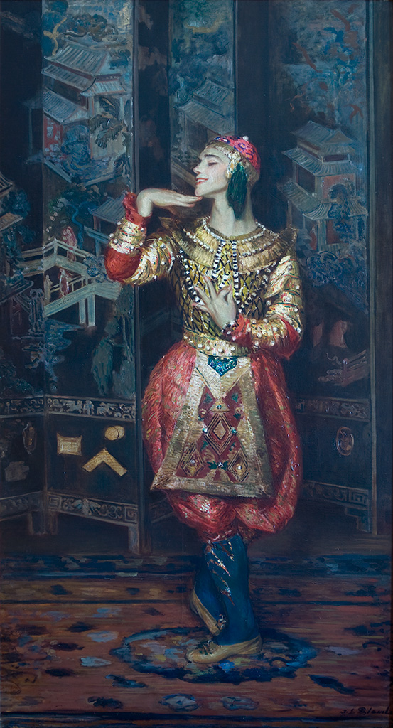 Jacques‑Émile Blanche, French, 1861–1942, Vaslav Nijinsky in Siamese Dance, c. 1910, oil on canvas, Collection of Ann and Gordon Getty, San Francisco