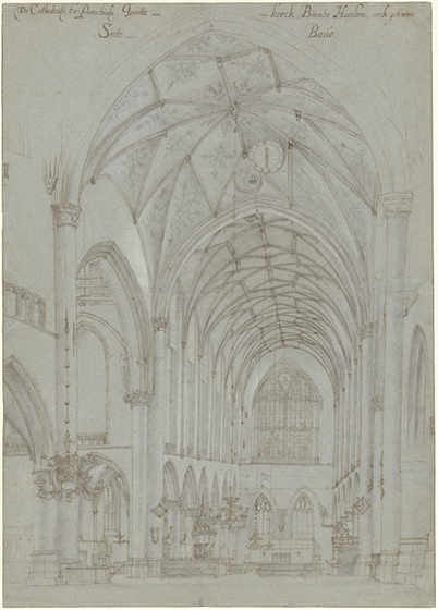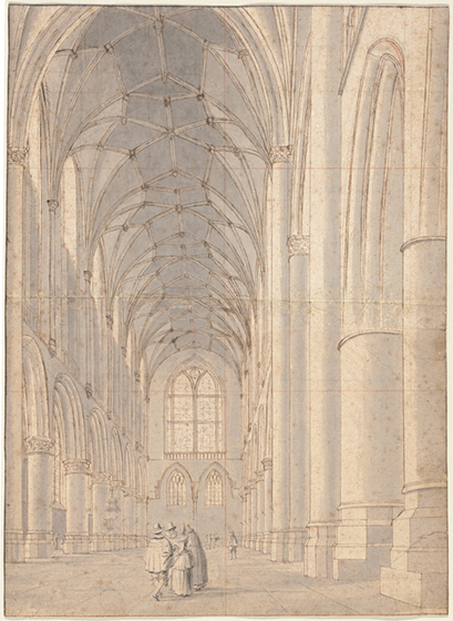 Pieter Jansz Saenredam, Interior of Saint Bavo’s Church, Haarlem, 1635, pen and ink with wash and touches of chalk over graphite, National Gallery of Art, Washington, Gift of Dian Woodner