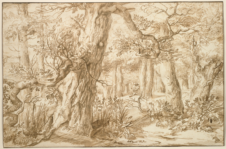 Jan Lievens, Forest Interior with a Draftsman, 1660s, pen and ink with wash, Maida and George Abrams Collection, Boston