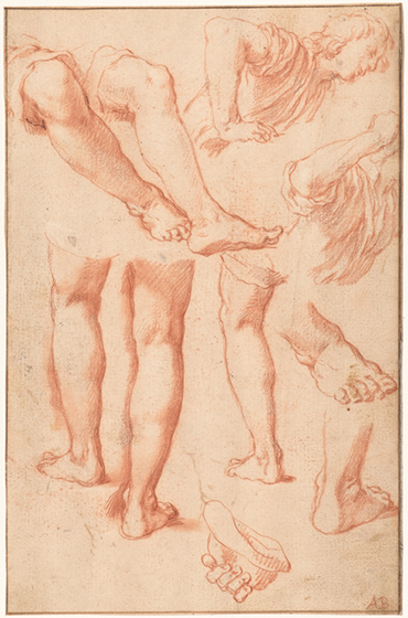 Abraham Bloemaert, Studies of Legs, Feet, and a Young Man Leaning, chalk, some pen and ink Rijksmuseum, Amsterdam