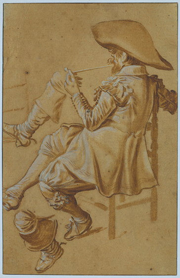 Dirck Hals, Sitting Pipe Smoker, 1622 – 1627, brush and ink with oil paint, heightened with white, over a sketch in chalk, Rijksmuseum, Amsterdam
