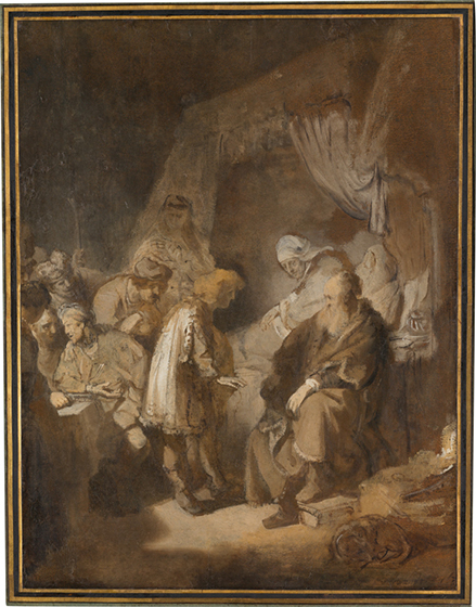 Rembrandt’s command of red chalk is exquisitely demonstrated in this sketch, with a range of tones capturing the light and shadow that fall on the man. Rembrandt used the figure to represent the Old Testament patriarch Jacob in Joseph Telling His Dreams, the oil sketch seen in the following slide.