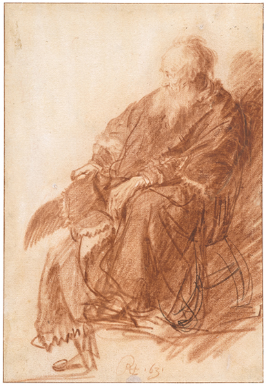 Rembrandt van Rijn, Old Man Seated, 1631, chalk on prepared paper, Private Collection