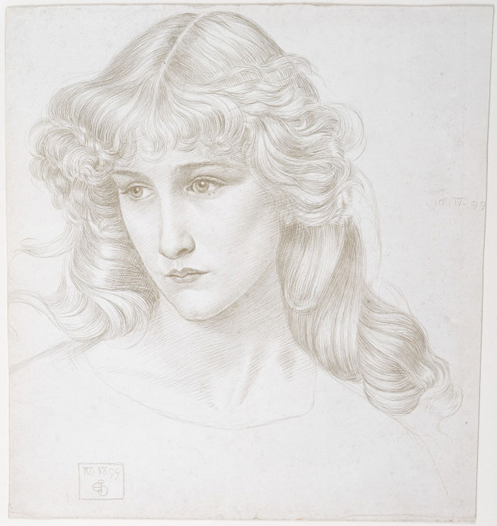 Joseph Edward Southall, Head of a Girl, 1899, metalpoint (probably silverpoint) with scratching on prepared paper, The Huntington Library, Art Collections, and Botanical Gardens, San Marino, California, Purchased with funds from the Schweppe Art Acquisition Fund