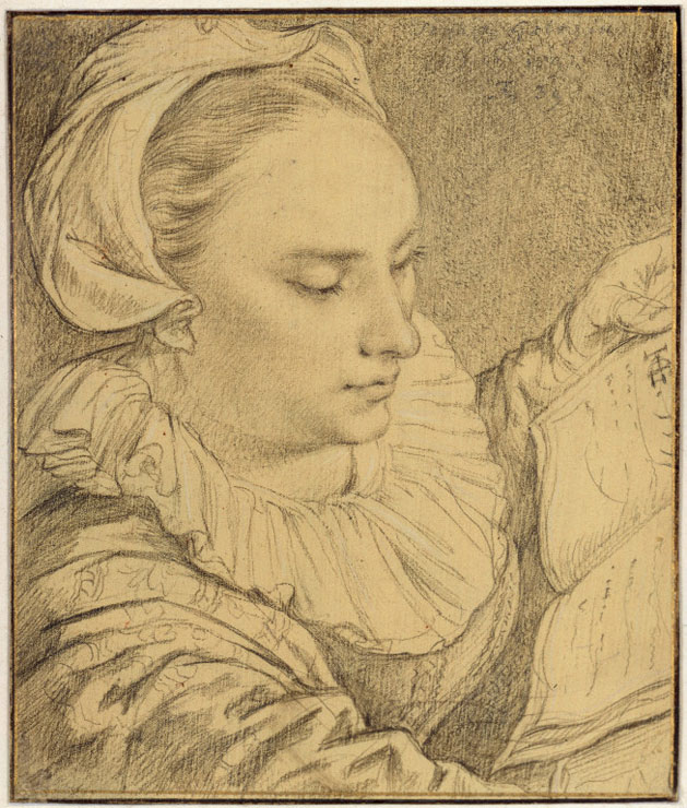 Hendrick Goltzius, Young Woman Reading a Book (Portrait of Sophia Goltzius, Sister of the Artist?), Seen from Above, 1591, metalpoint (probably silverpoint) on prepared paper or parchment, Staatliche Museen zu Berlin, Kupferstichkabinett © bpk, Berlin/Kupferstichkabinett, Staatliche Museen/Jörg P. Anders/Art Resource, NY
