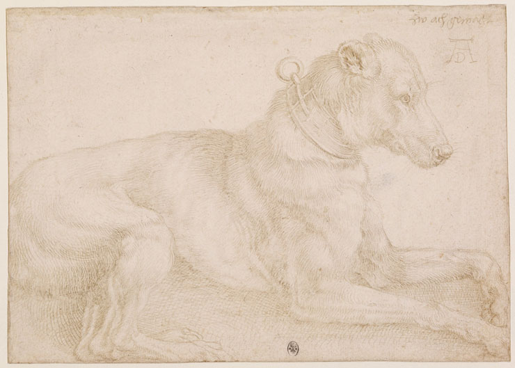 Albrecht Dürer , A Dog Resting, 1520, silverpoint over traces of carbon black on prepared paper, On loan from The British Museum, London © The Trustees of The British Museum, London