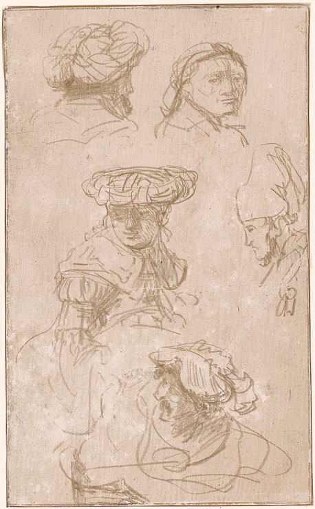 Rembrandt van Rijn, Five Studies of Heads, c. 1633, silverpoint on prepared vellum, Museum Boijmans Van Beuningen, Rotterdam, Koenigs Collection