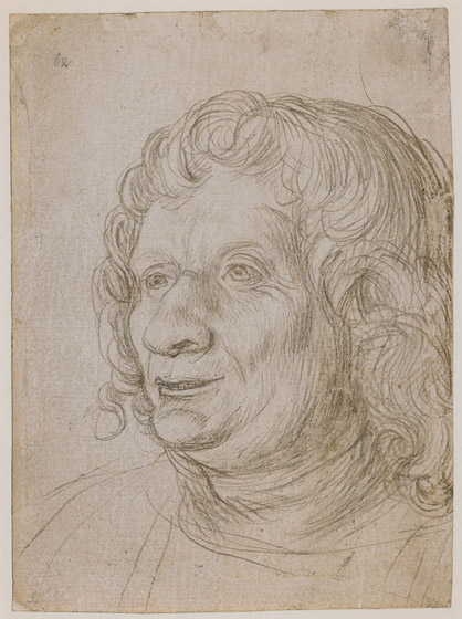 Hans Holbein the Elder (German, c. 1465 - 1524), Head of a Laughing Man Turned to the Left (recto); Study for a Statuette of Saint Sebastian (verso), c. 1497/1500, silverpoint on white prepared paper, 5 3/16 × 3 3/4 (13.1 × 9.6), On loan from The British Museum, London © The Trustees of the British Museum, London, 1885,0509.1612.
