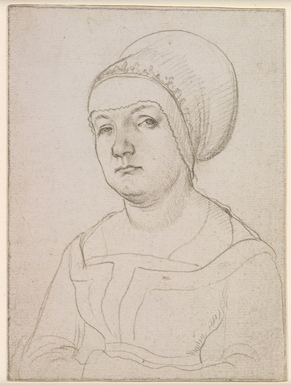 Workshop of Hans Holbein the Elder, attributed to Hans Burgkmair the Elder, Portrait of the Wife of Jörg Fischer, c. 1512/1515, silverpoint with touches of copperpoint on white prepared paper, 5 3/8 × 4 (13.6 × 10.2), On loan from The British Museum, London © The Trustees of the British Museum, London, 1854,0628.113.