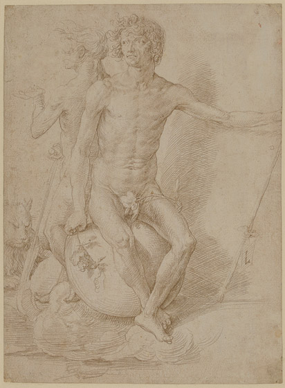 Lucas van Leyden (Netherlandish, 1489/1494 - 1533), Two Nude Allegorical Figures, c. 1515, silverpoint on white prepared paper, 10 7/8 × 8 1/16 (27.7 × 20.5), On loan from The British Museum, London © The Trustees of the British Museum, London, 1892,0804.9.
