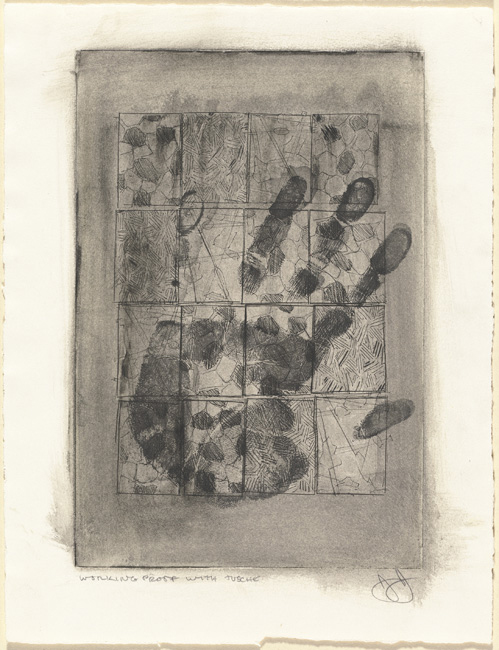 Watchman, 1967, lithograph, working proof with crayon, National Gallery of Art, Washington, Patrons' Permanent Fund and Special Friends of the National Gallery of Art. Art © Jasper Johns/Licensed by VAGA, New York, NY. 2004.167.34