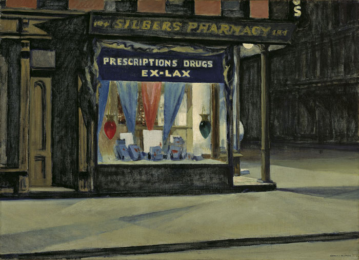 Drug Store, 1927, oil on canvas, Museum of Fine Arts, Boston, Bequest of John T. Spaulding © Museum of Fine Arts, Boston.